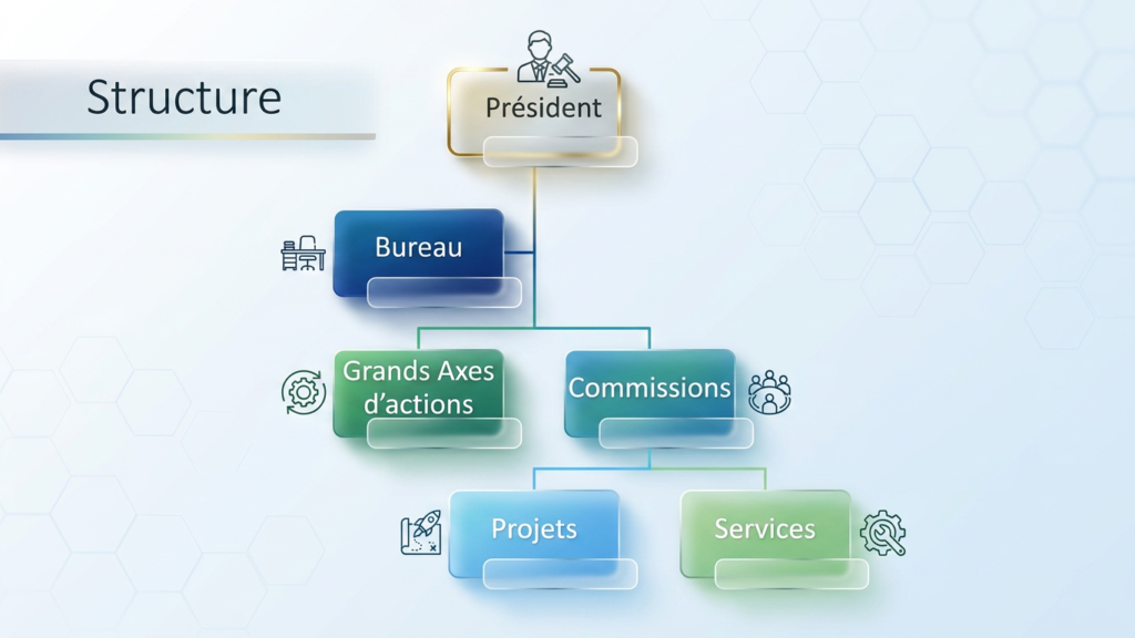 L’association est structurée autour d’un Bureau exécutif et de plusieurs commissions thématiques permettant de porter des actions concrètes dans des domaines clés : suivi des lauréats, communication, événements, scientifique et technique, partenariats et dimension sociale.